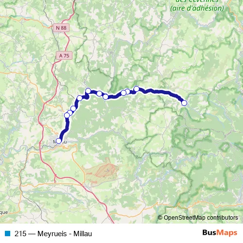 Click here to view the nearest 215 - Meyrueis - Millau bus stop.
