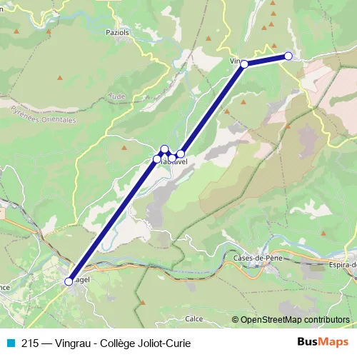 Bus 215 - Vingrau - Collège Joliot-Curie in Tautavel: Stops & Timetable