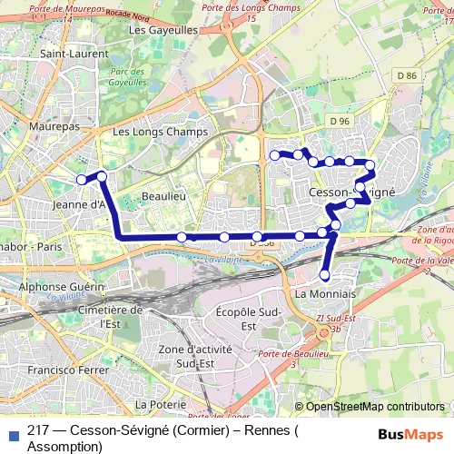 Click here to view the nearest 217 - Cesson-Sévigné (Cormier) – Rennes (Assomption) bus stop.
