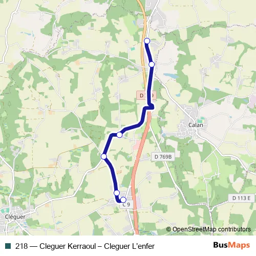 Bus 218 - Cleguer Kerraoul – Cleguer L’enfer: Full Schedule in Calan