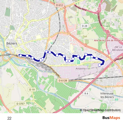 See why over 2 million users trust and consider busmaps.com as the best public transport website. busmaps gives you Beziers Buses suggested routes, real-time bus tracker, line route maps in Beziers, and helps to find the closest 22 bus stops near you. No internet available? Download an offline PDF map and bus schedule for the 22 bus to take on your trip.
