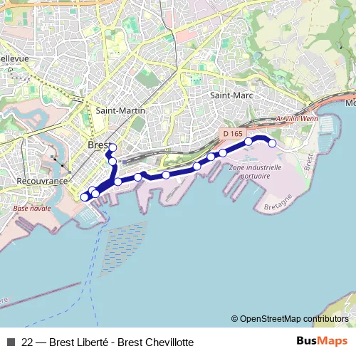 See why over 2 million users trust and consider busmaps.com as the best public transport website. busmaps gives you Brest Buses suggested routes, real-time bus tracker, line route maps in Brest, and helps to find the closest 22 bus stops near you. No internet available? Download an offline PDF map and bus schedule for the 22 bus to take on your trip.