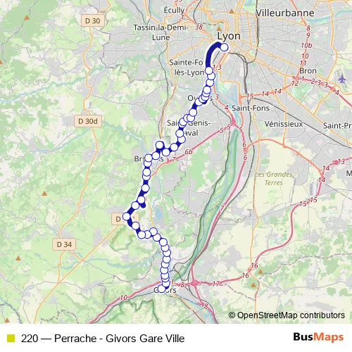 Bus 220 - Perrache - Givors Gare Ville: Full Schedule in Lyon