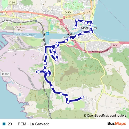 Bus 23 - PEM - La Gravade in Martigues: Stops & Timetable