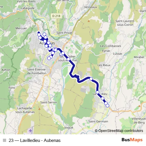 Click here to view the nearest 23 - Lavilledieu - Aubenas bus stop.