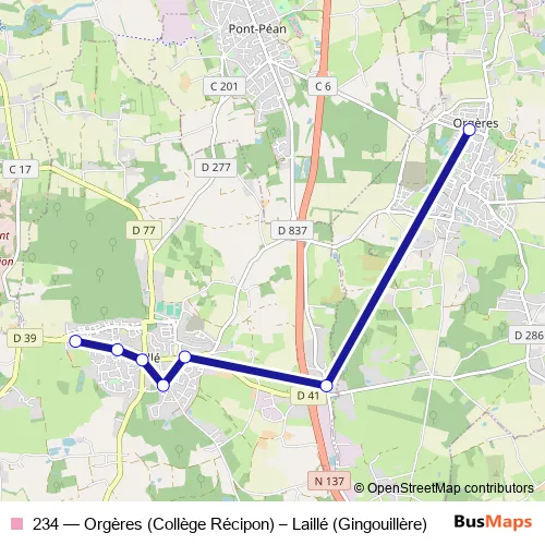 Click here to view the nearest 234 - Orgères (Collège Récipon) – Laillé (Gingouillère) bus stop.