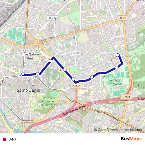 See why over 2 million users trust and consider busmaps.com as the best public transport website. busmaps gives you Saint-Denis Buses suggested routes, real-time bus tracker, line route maps in Saint-Denis, and helps to find the closest 240 bus stops near you. No internet available? Download an offline PDF map and bus schedule for the 240 bus to take on your trip.
