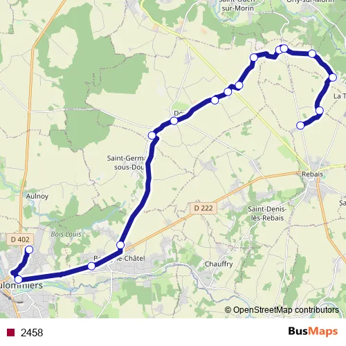 See why over 2 million users trust and consider busmaps.com as the best public transport website. busmaps gives you Doue Buses suggested routes, real-time bus tracker, line route maps in Doue, and helps to find the closest 2458 bus stops near you. No internet available? Download an offline PDF map and bus schedule for the 2458 bus to take on your trip.