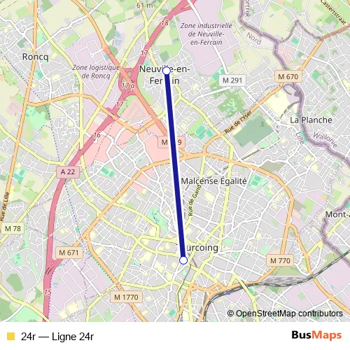 See why over 2 million users trust and consider busmaps.com as the best public transport website. busmaps gives you Linselles Buses suggested routes, real-time bus tracker, line route maps in Linselles, and helps to find the closest 24r bus stops near you. No internet available? Download an offline PDF map and bus schedule for the 24r bus to take on your trip.