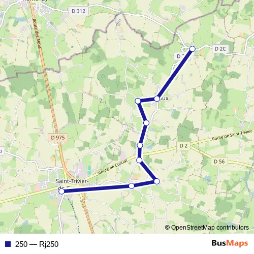 See why over 2 million users trust and consider busmaps.com as the best public transport website. busmaps gives you Saint-Trivier-de-Courtes Buses suggested routes, real-time bus tracker, line route maps in Saint-Trivier-de-Courtes, and helps to find the closest 250 bus stops near you. No internet available? Download an offline PDF map and bus schedule for the 250 bus to take on your trip.