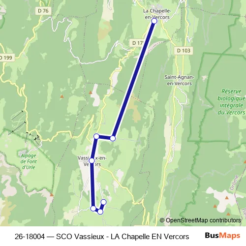 Click here to view the nearest 26-18004 - SCO Vassieux - LA Chapelle EN Vercors bus stop.