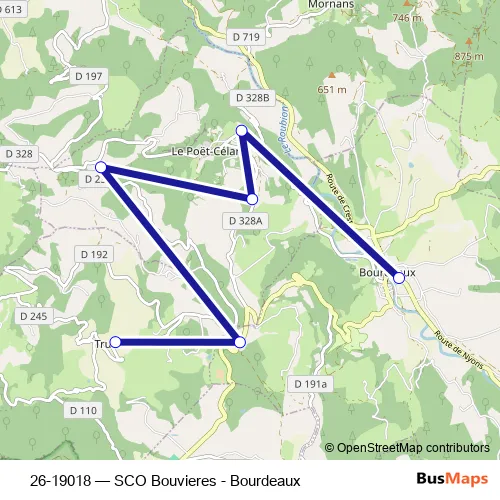 Click here to view the nearest 26-19018 - SCO Bouvieres - Bourdeaux bus stop.