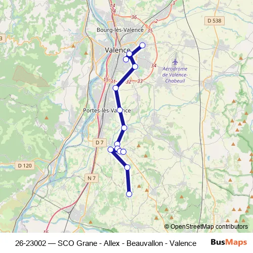 Click here to view the nearest 26-23002 - SCO Grane - Allex - Beauvallon - Valence bus stop.