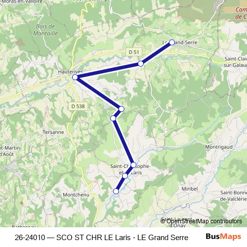 Click here to view the nearest 26-24010 - SCO ST CHR LE Laris - LE Grand Serre bus stop.