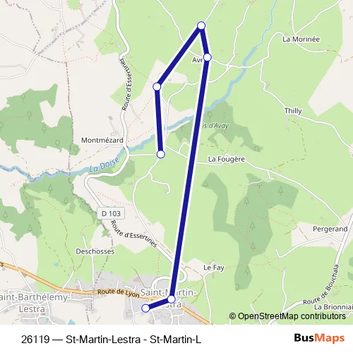 See why over 2 million users trust and consider busmaps.com as the best public transport website. busmaps gives you Saint-Martin-Lestra Buses suggested routes, real-time bus tracker, line route maps in Saint-Martin-Lestra, and helps to find the closest 26119 bus stops near you. No internet available? Download an offline PDF map and bus schedule for the 26119 bus to take on your trip.