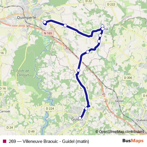 Bus 269 - Villeneuve Braouic - Guidel (matin): Full Schedule in Redene
