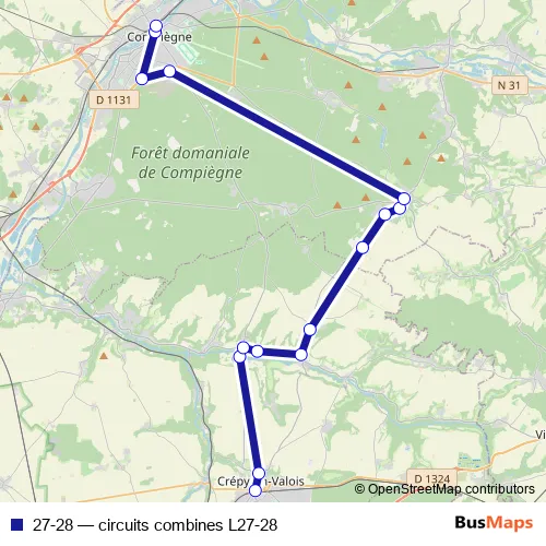 Bus 27-28 - circuits combines L27-28 in Compiegne: Stops & Timetable