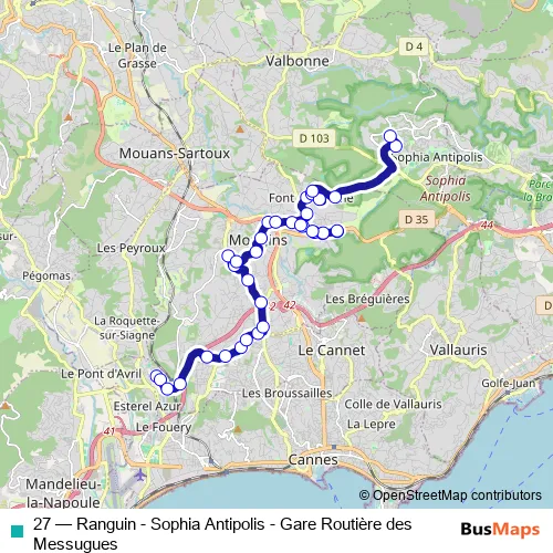 Bus 27 - Ranguin - Sophia Antipolis - Gare Routière des Messugues: Full Schedule in Mougins