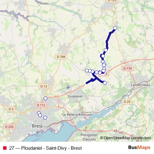 Click here to view the nearest 27 - Ploudaniel - Saint-Divy - Brest bus stop.