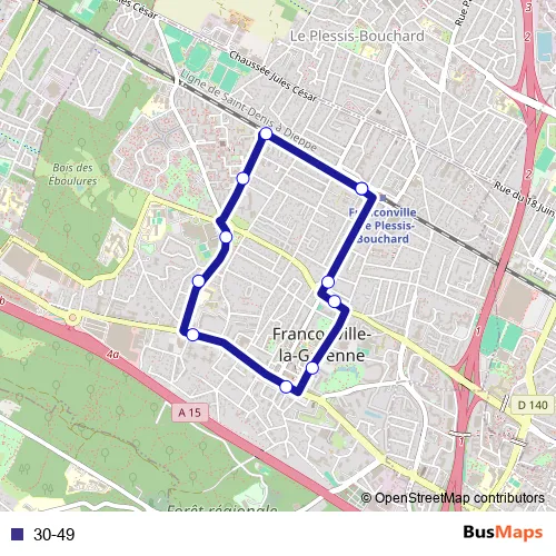 The first stop of the 30-49 bus route is Gare de Franconville and the last stop is Gare de Franconville. 30-49 is operational during todos los días.