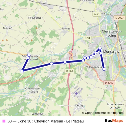 Bus 30 - Ligne 30 : Chevillon Marsan - Le Plateau: Full Schedule in Montargis