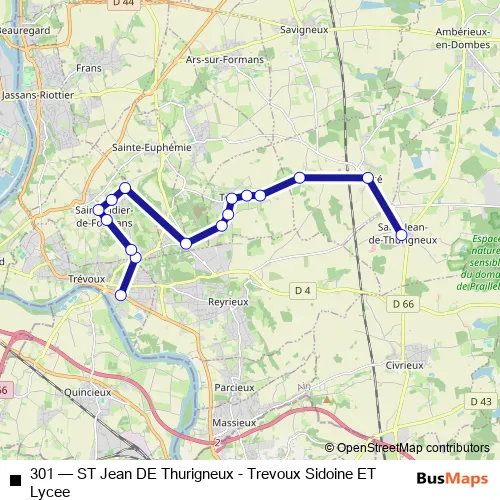 Click here to view the nearest 301 - ST Jean DE Thurigneux - Trevoux Sidoine ET Lycee bus stop.