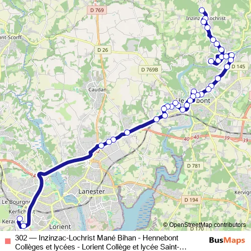 Click here to view the nearest 302 - Inzinzac-Lochrist Mané Bihan - Hennebont Collèges et lycées - Lorient Collège et lycée Saint-Joseph / Lycée Notre Dame de La Paix bus stop.