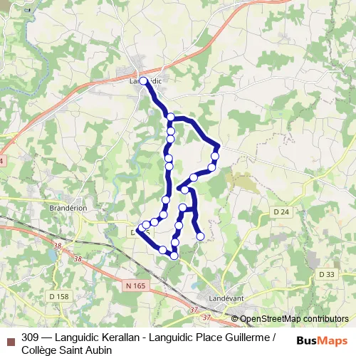 Bus 309 - Languidic Kerallan - Languidic Place Guillerme / Collège Saint Aubin: Full Schedule in Languidic