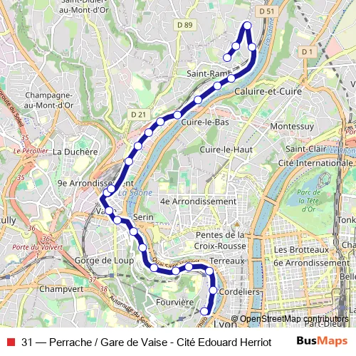 See why over 2 million users trust and consider busmaps.com as the best public transport website. busmaps gives you Lyon Buses suggested routes, real-time bus tracker, line route maps in Lyon, and helps to find the closest 31 bus stops near you. No internet available? Download an offline PDF map and bus schedule for the 31 bus to take on your trip.