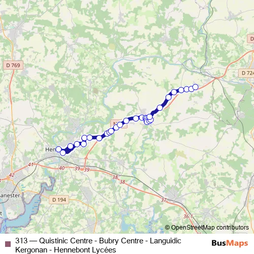 Click here to view the nearest 313 - Quistinic Centre - Bubry Centre - Languidic Kergonan - Hennebont Lycées bus stop.