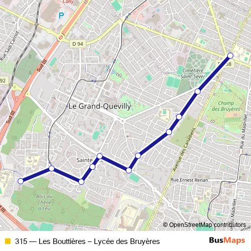 Bus 315 - Les Bouttières – Lycée des Bruyères: Full Schedule in Rouen