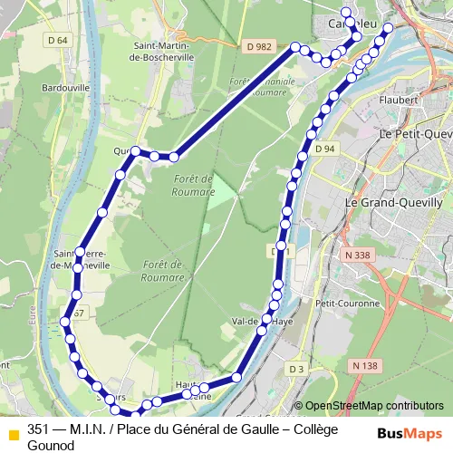 Bus 351 - M.I.N. / Place du Général de Gaulle – Collège Gounod: Full Schedule in Rouen