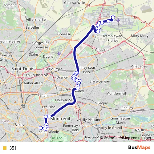 See why over 2 million users trust and consider busmaps.com as the best public transport website. busmaps gives you Paris Buses suggested routes, real-time bus tracker, line route maps in Paris, and helps to find the closest 351 bus stops near you. No internet available? Download an offline PDF map and bus schedule for the 351 bus to take on your trip.