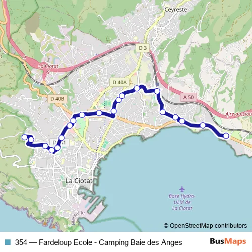 Bus 354 - Fardeloup Ecole - Camping Baie des Anges Schedule in Marseille
