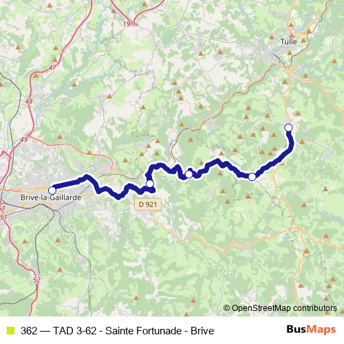 See why over 2 million users trust and consider busmaps.com as the best public transport website. busmaps gives you Sainte-Fortunade Buses suggested routes, real-time bus tracker, line route maps in Sainte-Fortunade, and helps to find the closest 362 bus stops near you. No internet available? Download an offline PDF map and bus schedule for the 362 bus to take on your trip.