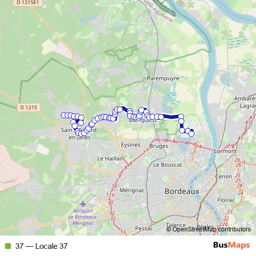 See why over 2 million users trust and consider busmaps.com as the best public transport website. busmaps gives you Bordeaux Buses suggested routes, real-time bus tracker, line route maps in Bordeaux, and helps to find the closest 37 bus stops near you. No internet available? Download an offline PDF map and bus schedule for the 37 bus to take on your trip.