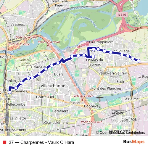 Click here to view the nearest 37 - Charpennes - Vaulx O'Hara bus stop.