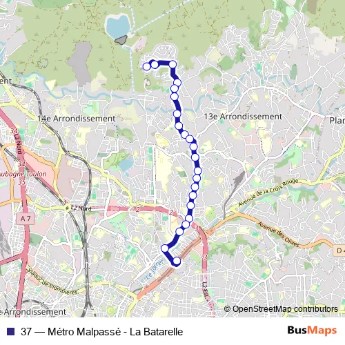 See why over 2 million users trust and consider busmaps.com as the best public transport website. busmaps gives you Marseille Buses suggested routes, real-time bus tracker, line route maps in Marseille, and helps to find the closest 37 bus stops near you. No internet available? Download an offline PDF map and bus schedule for the 37 bus to take on your trip.