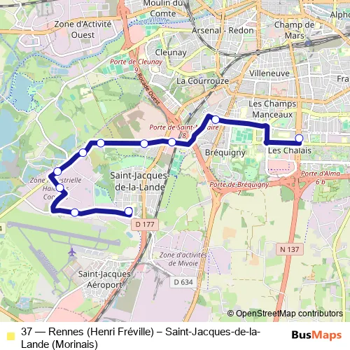Bus 37 - Rennes (Henri Fréville) – Saint-Jacques-de-la-Lande (Morinais) Schedule in Rennes