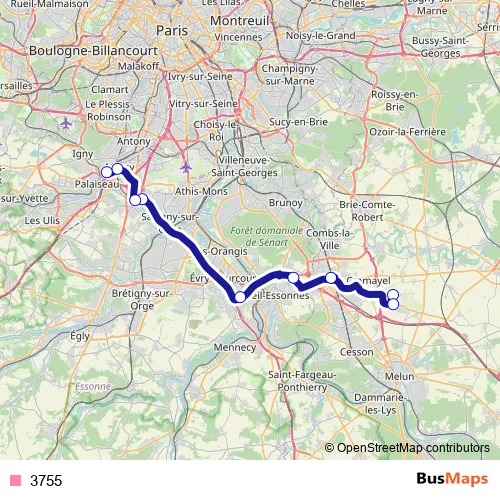 See why over 2 million users trust and consider busmaps.com as the best public transport website. busmaps gives you Evry Buses suggested routes, real-time bus tracker, line route maps in Evry, and helps to find the closest 3755 bus stops near you. No internet available? Download an offline PDF map and bus schedule for the 3755 bus to take on your trip.