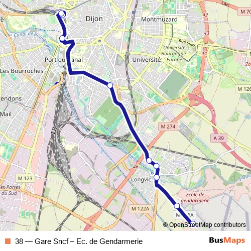 See why over 2 million users trust and consider busmaps.com as the best public transport website. busmaps gives you Dijon Buses suggested routes, real-time bus tracker, line route maps in Dijon, and helps to find the closest 38 bus stops near you. No internet available? Download an offline PDF map and bus schedule for the 38 bus to take on your trip.