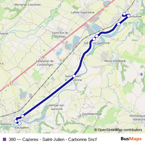 Click here to view the nearest 380 - Cazeres - Saint-Julien - Carbonne Sncf bus stop.