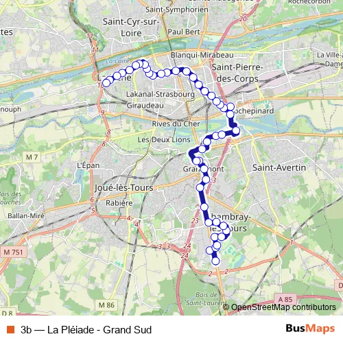 Bus 3b - La Pléiade - Grand Sud: Full Schedule in Tours