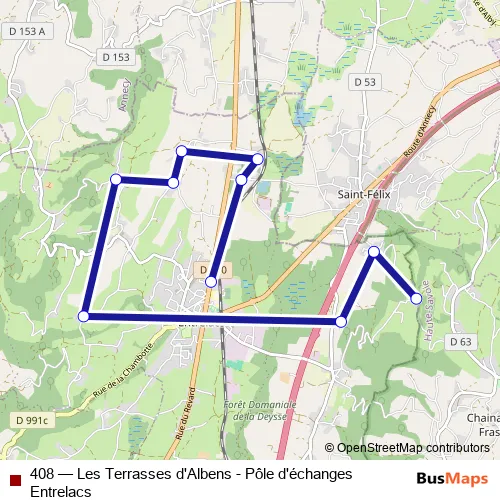 Click here to view the nearest 408 - Les Terrasses d'Albens - Pôle d'échanges Entrelacs bus stop.