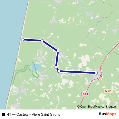 Click here to view the nearest 41 - Castets - Vielle Saint Girons bus stop.