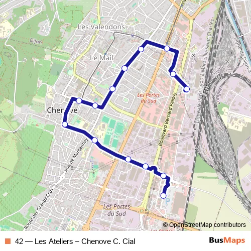Click here to view the nearest 42 - Les Ateliers – Chenove C. Cial bus stop.