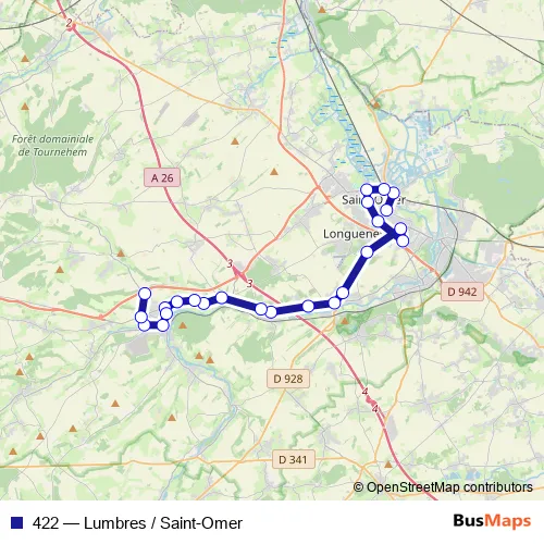 Bus 422 - Lumbres / Saint-Omer in Nielles-les-Blequin: Stops & Timetable