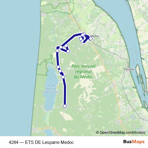 Click here to view the nearest 4284 - ETS DE Lesparre Medoc bus stop.