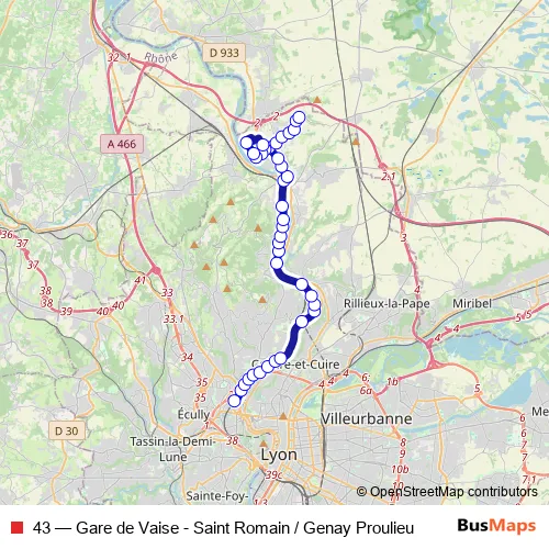 Click here to view the nearest 43 - Gare de Vaise - Saint Romain / Genay Proulieu bus stop.