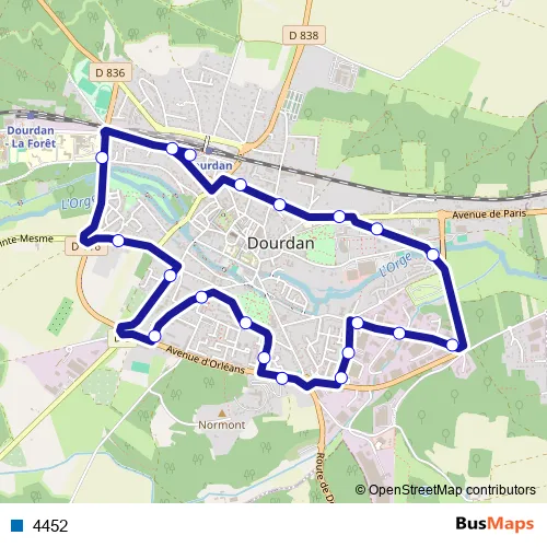 The first stop of the 4452 bus route is Gare de Dourdan and the last stop is Gare de Dourdan. 4452 is operational during todos los días.